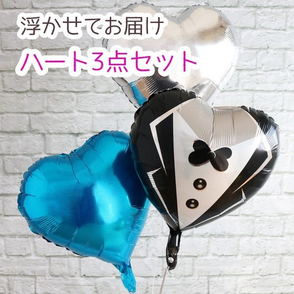 バルーン電報 結婚式 おしゃれ 浮き型 風船 メッセージカード付 ヘリウムガス 二次会 タキシード 飾り付け 3点セット パステルブルー 浮かせてお届け Uk063 幸せを運ぶ風船shopフロンティアバルーン